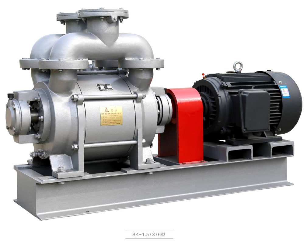 水環式真空泵(簡稱水環泵)是一種粗真空泵,它所能獲得的限壓力,對于單級泵為4~8kPa;對于雙圾泵為2~4kP8。水環泵在石油、化工、機械、礦山、輕工、造紙、動力、冶金、醫藥和食品等工業及市政與農業等部門的許多工藝過程中,如真空過濾、真空送料、真空脫氣、真空蒸發、真空濃縮和真空回潮等、得到了廣泛的應用,由于水環泵壓縮氣體的過程是等溫的,故可抽除易燃、易爆的氣體,比外還可抽除含塵,含水的氣體,因此,水環泵的應用日益增大。